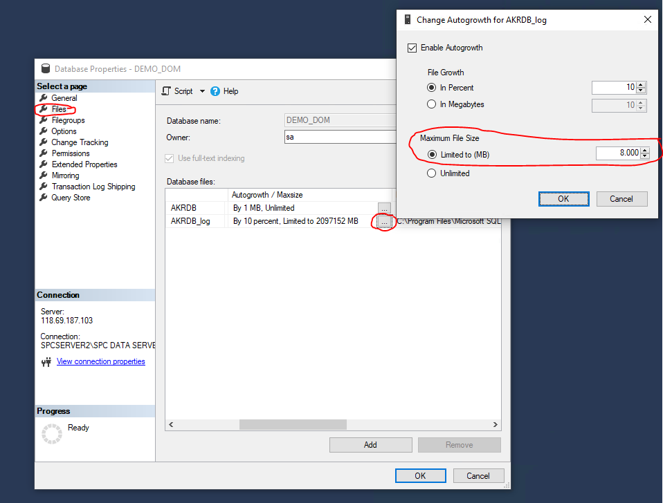 Tóm lại: Recovery model = Full để phục vụ nhu cầu Rollback dữ liệu (SQL) về bất kỳ thời điểm nào khi cần, tuy nhiên thực tế hiếm khi dùng đến recovery này. Kết quả là: file log của database phồng lên rất lớn, đặc biệt là các database có lượng dữ liệu lớn và truy vấn nhiều.