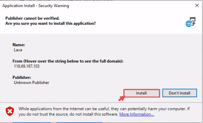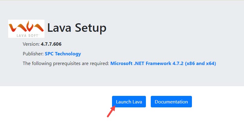 3. Bấm Launch Lava (như hình bên dưới) để Tải file cài đặt về máy
