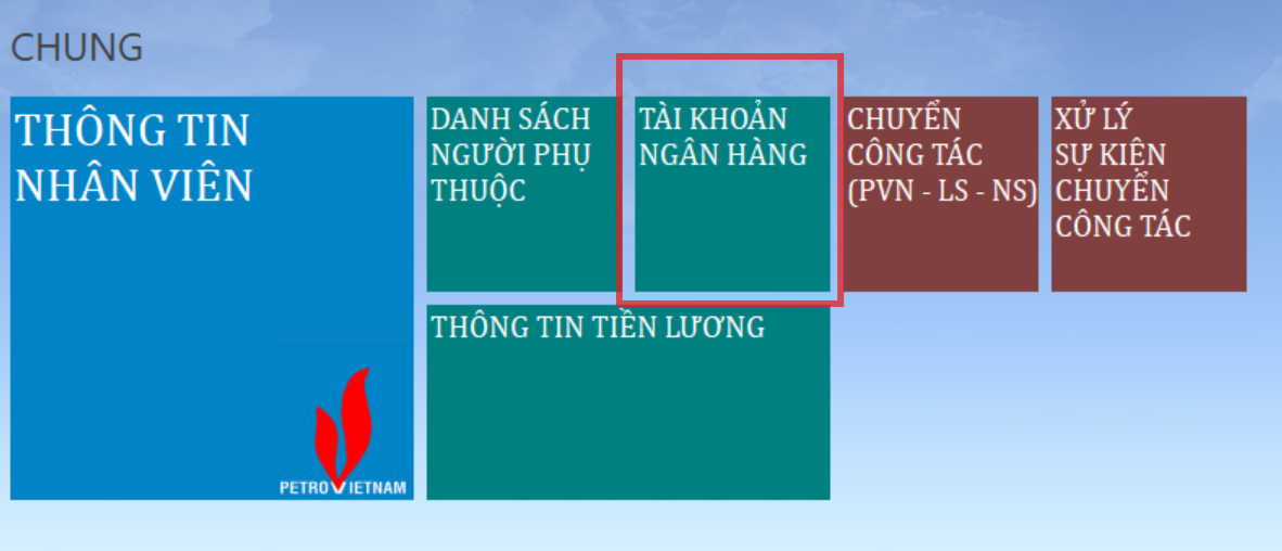 - Truy cập: THÔNG NHÂN VIÊN/TÀI KHOẢN NGÂN HÀNG (như ảnh minh họa)