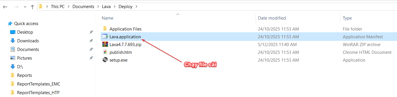 Bước 5: Copy file cài mới tải về vào thư mục Deploy > giải nén file zip > chạy file Lava.application để thực hiện quy trình cài đặt.