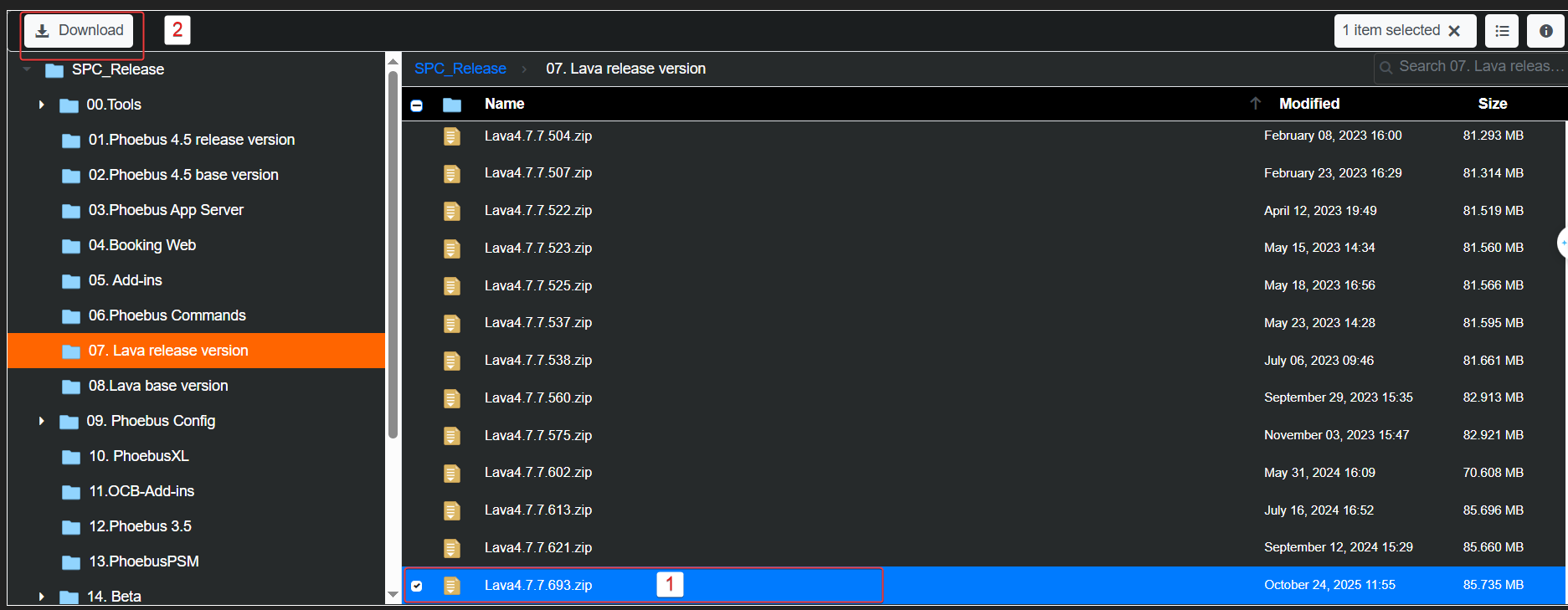 Bước 2: Tại danh sách thư mục bên trái, tìm và click vào thư mục Lava release version để mở các file cài đặt phiên bản.